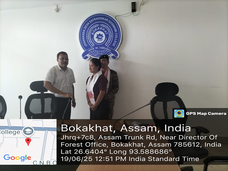 June 19, 2025On 19th June, 2025, 74 Assam NCC (Girls) Coy, JDSG College organised rank ceremony of 12 cadets. The cadets were felicitated by Lt. Col. S. Zamkholun, Officer Commanding, principal of the College Dr. Jayanta Gogoi, ANO Lt. Hirimpa Saikia and IQAC Assistant Coordinator Dr. Chiranjib Dahal. The program was initiated by ANO Lt. Hirimpa Saikia and was attended by Dikshya Saikia, Assistant Professor, Deptt. Of Commerce, JDSG College. The cadets who received ranks include Ms. Joyamoni Rabha (Under Officer), Borsha Bori (Sergeant), Bonti Das (CPL), Dipamoni Charo (CPL), Senget Engtipi (CPL), Pritisha Hazarika (L/ CPL), Anju Doley, (L/ CPL), Pratima Bora (L/CPL), Mondira Kardong (L/CPL), Borsha Rani Das (L/CPL), Bhumika Patgiri (L/CPL) and Bogitota Doley (L/CPL).