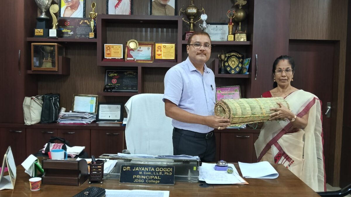 Dipali Rajkumari, Vice Principal, J.D.S.G. College, Bokakhat donated three numbers of traditional kath for J.D.S.G. College, Bokakhat in the hands of Dr. J. Gogoi, Principal, J.D.S.G College on 4-08-2025 for facilitation of Satradhikars during various Sattriya rituals and functions in the college.