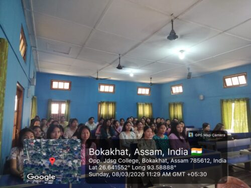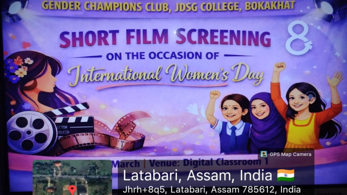 The Gender Champions Club, JDSG College, Bokakhat organised a short film screening program on the occasion of International Women’s Day in the college. Three thought-provoking films based on women related issues were screened today. ‘Juice’ a short film by the award winning director, Neeraj Ghaywan explores the theme of gender inequality and is a commentary on how women are treated irrespective of their social strata. The other two short films that were screened are- ‘Uruli’ and ‘Weeping Woman’ both Assamese movies highlighting domestic violence and the deeply rooted gender bias respectively. After the screening, an interactive session was organised where Monsumi Sarma, nodal teacher, Gender Champions Club talked about the portrayal of women in the movies. The students also expressed their opinions regarding the issues pertaining to women.