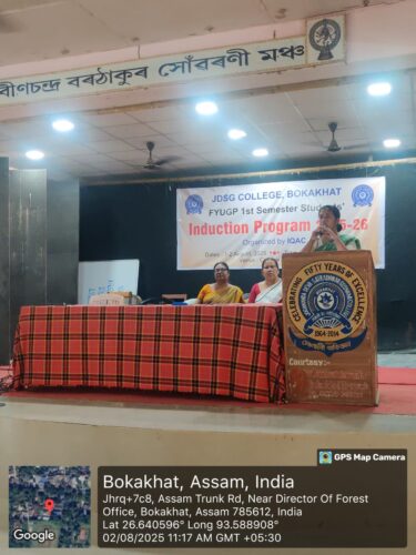 Induction Program 2025-26August 1, 2025Report on the talk on “Guldellines for preventlon of Sexual Harassment at Workplace”August 2, 2025 Categories Event Tags Induction Program 2025-26 Day 2 Share Related postsMarch 2, 2026The Department of Commerce successfully organized the inauguration programme of three Add-on Courses on 2nd March 2026 at 2:30 PM.Read moreFebruary 27, 2026Dance Workshop at JDSG CollegeRead moreFebruary 17, 2026BSE Investor Awareness Program February 2026 organised by department of Commerce,JDSG COLLEGE BOKAKHATRead more