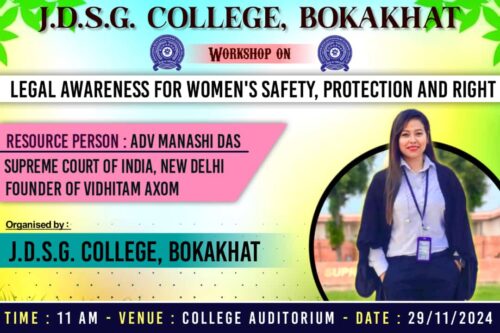 The Internal Complaints Committee (ICC) of J.D.S.G. College, Bokakhat, is a statutory body constituted under the UGC (Prevention, Prohibition and Redressal of Sexual Harassment of Women Employees and Students in Higher Educational Institutions Regulations, 2015, in compliance with the Sexual Harassment of Women at Workplace (Prevention, Prohibition and Redressal) Act, 2015.